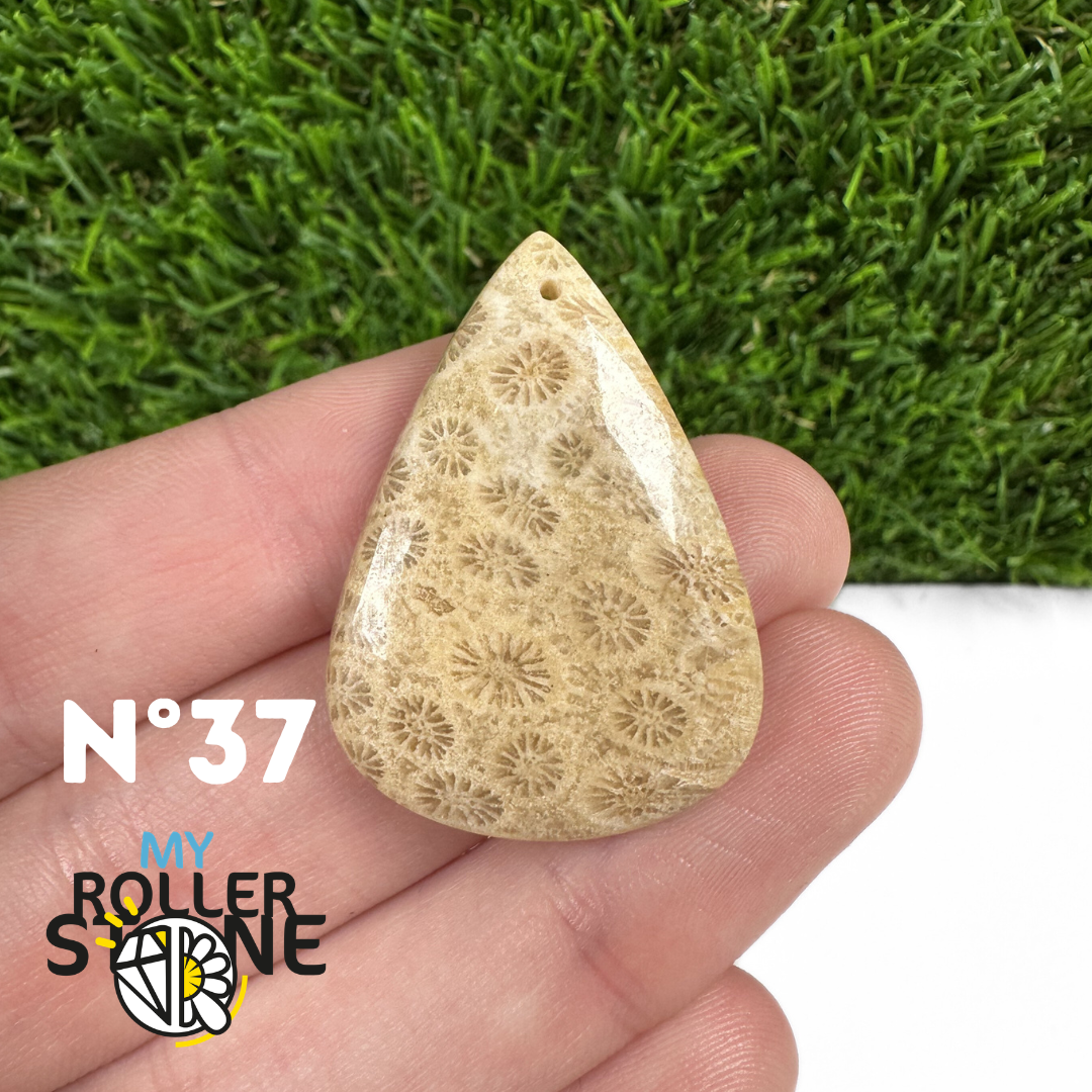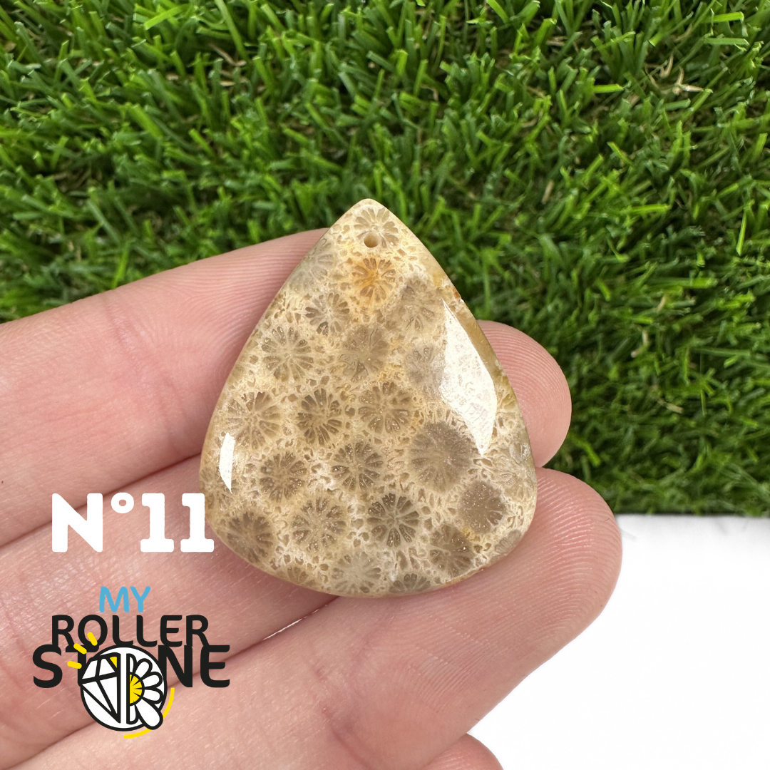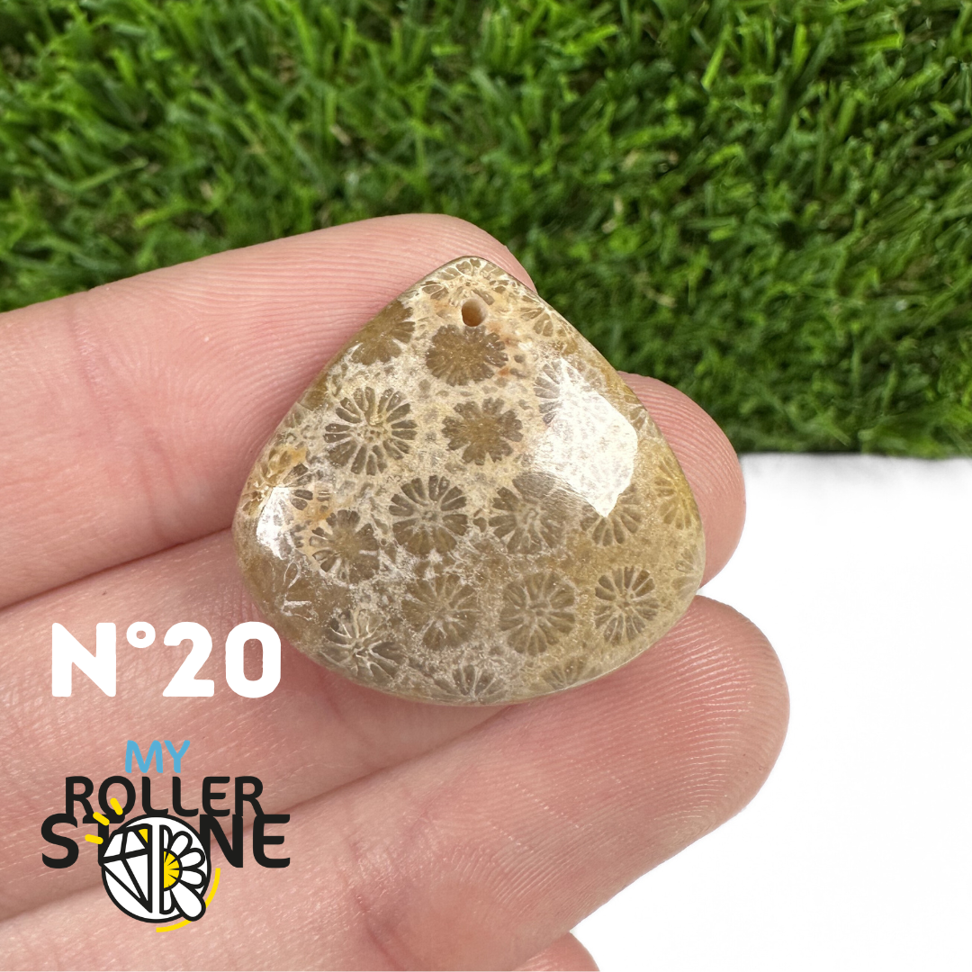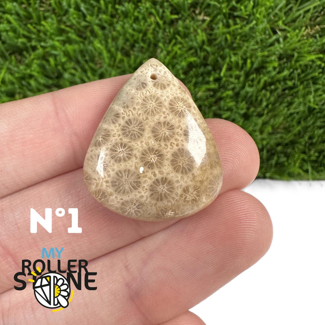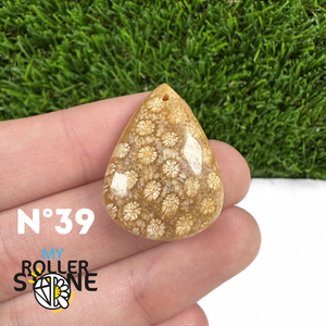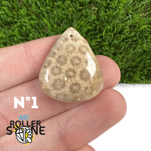 renouveau, cette pierre rare associe puissance fossile et élégance intemporelle. Chaque pendentif, soigneusement poli à la main, est une pièce unique façonnée par le temps et la nature.