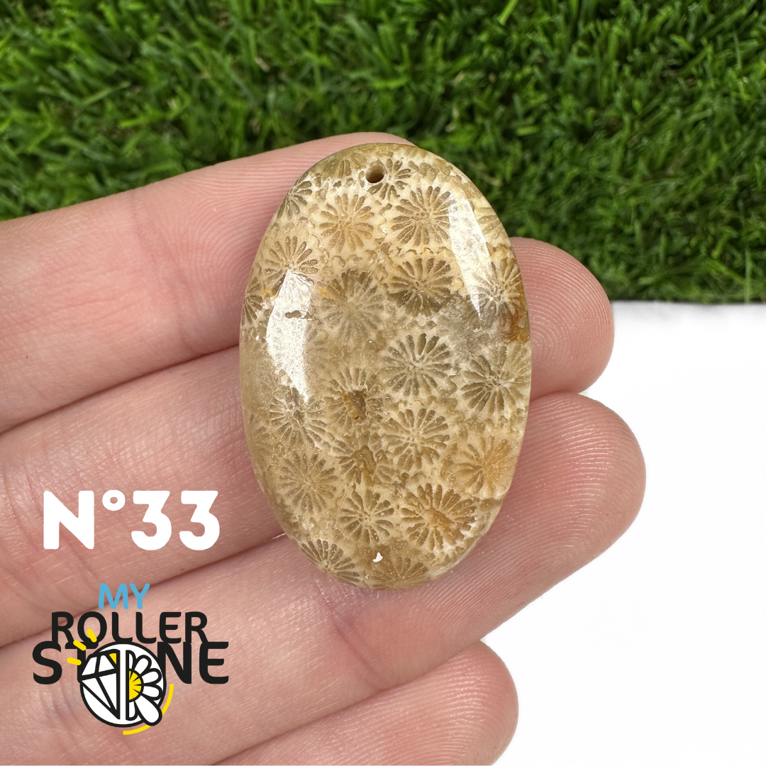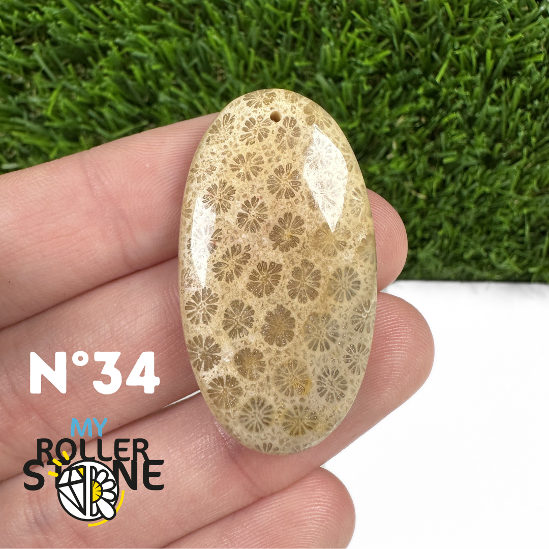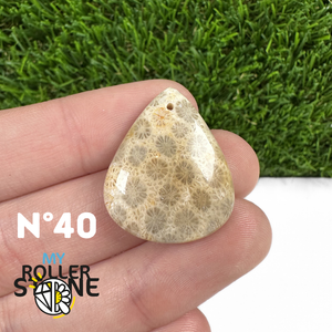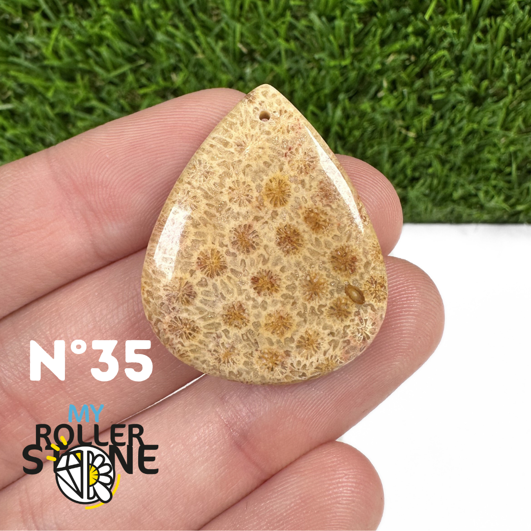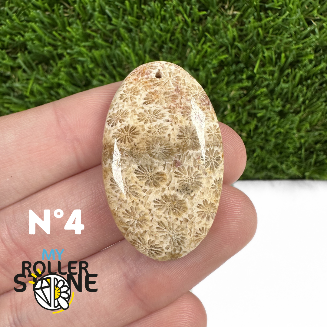 renouveau, cette pierre rare associe puissance fossile et élégance intemporelle. Chaque pendentif, soigneusement poli à la main, est une pièce unique façonnée par le temps et la nature.