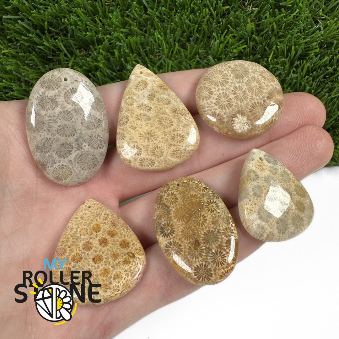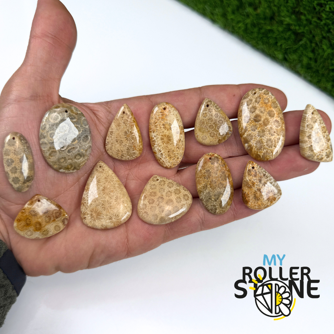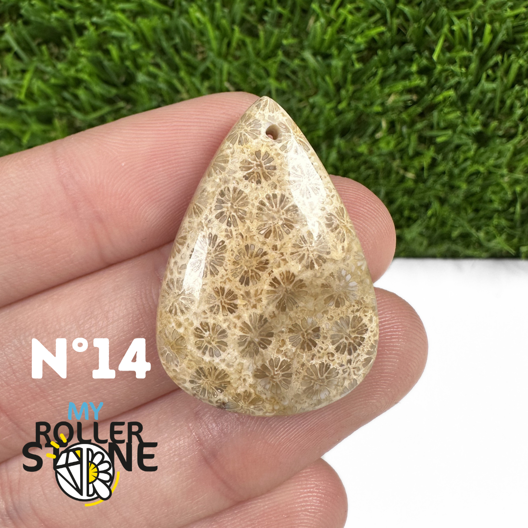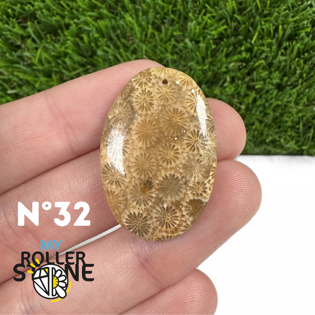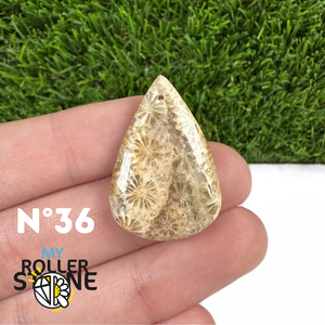 renouveau, cette pierre rare associe puissance fossile et élégance intemporelle. Chaque pendentif, soigneusement poli à la main, est une pièce unique façonnée par le temps et la nature.