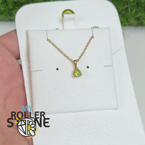 Ce pendentif solitaire en Péridot naturel monté en argent 925 plaqué or 18K met en valeur une gemme trillon de 7,9 mm. La monture dorée souligne la luminosité verte du péridot et apporte une touche élégante et contemporaine à ce bijou raffiné.