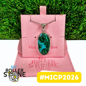 rareté de cette association naturelle. La rencontre de la malachite et de la chrysocolle au sein d’une même pierre crée des motifs uniques, mêlant verts profonds et bleus intenses. Chaque pendentif est une