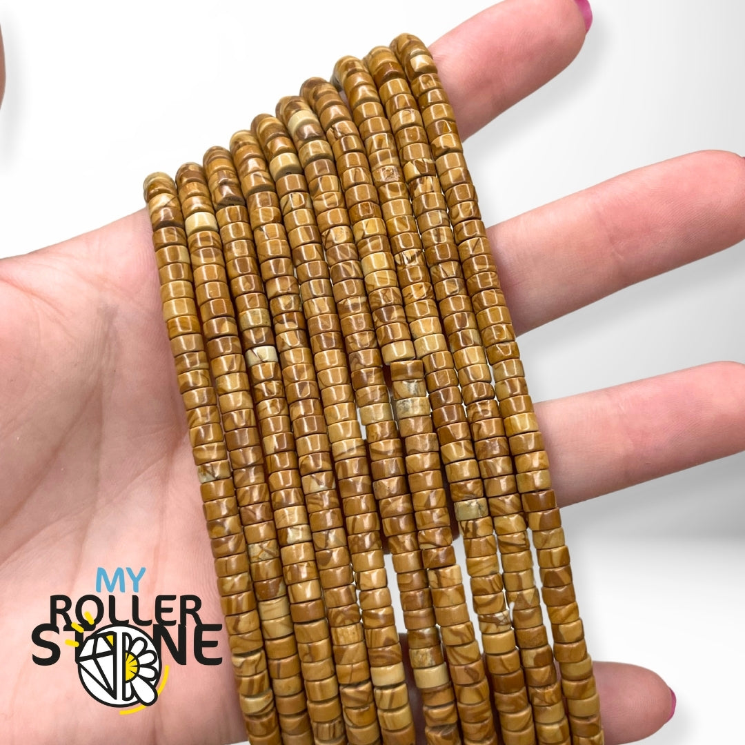 perles Heishi en Bois Pétrifié naturel captivent par leurs teintes terreuses et leurs nuances organiques. Pierre d’ancrage et de sérénité, le Bois Pétrifié symbolise la force tranquille, la stabilité et la connexion aux racines profondes de la Terre. Leur forme