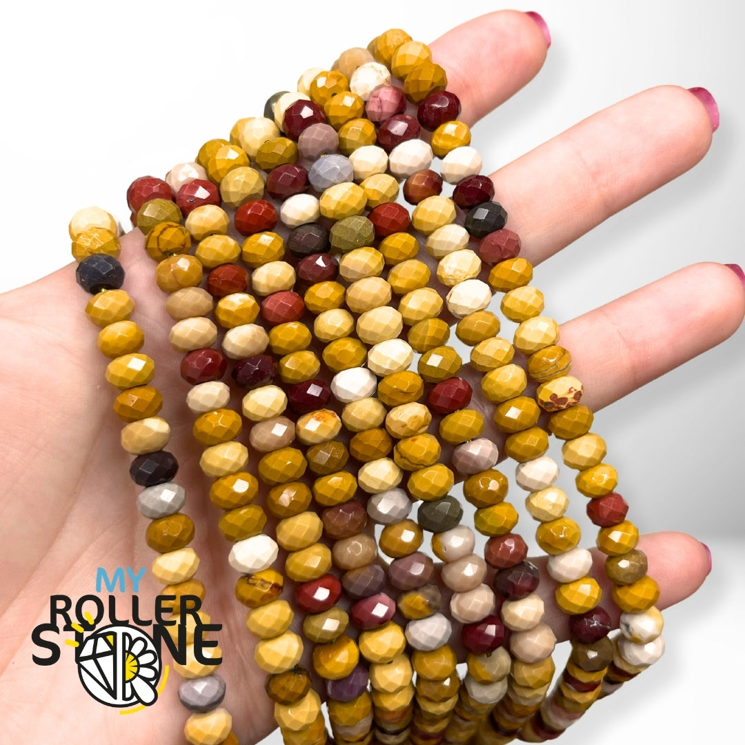 Perles Rondelles Facettées en Jaspe Mookaïte – Vitalité, Stabilité & Confiance