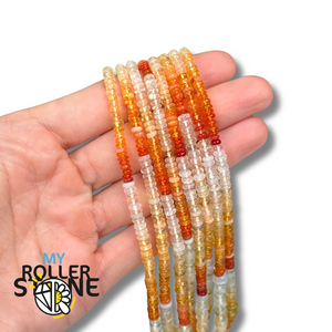 rondelles, soigneusement taillées et polies, reflètent toute la chaleur et la puissance naturelle de cette gemme solaire.