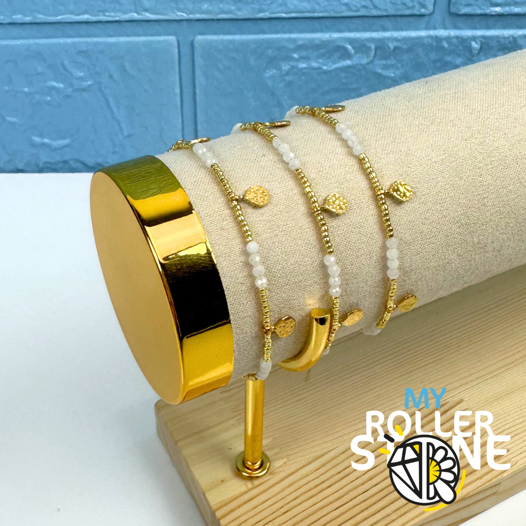 Disponible en plusieurs pierres – agate blanche, rubis zoïsite, cornaline et amazonite – il offre une palette de couleurs élégantes, idéale pour s’adapter à tous les styles et toutes les envies.