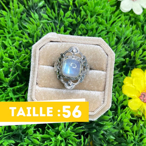 Explorez notre Bague Argent 925 Pierre de Lune. Cette création marie avec élégance l'argent sterling à la mystique Pierre de Lune, donnant vie à une pièce au charme intemporel. La Pierre de Lune aux reflets bleus flamboyants est méticuleusement taillée pour briller d'un éclat unique, sublimée par un design raffiné. Exprimez votre style avec notre Bague Argent 925 Pierre de Lune.