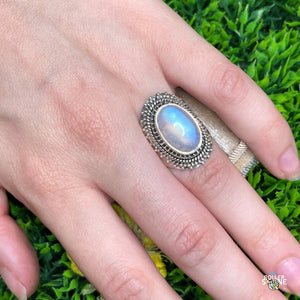 Explorez notre Bague Argent 925 Pierre de Lune. Cette création marie avec élégance l'argent sterling à la mystique Pierre de Lune, donnant vie à une pièce au charme intemporel. La Pierre de Lune aux reflets bleus flamboyants est méticuleusement taillée pour briller d'un éclat unique, sublimée par un design raffiné. Exprimez votre style avec notre Bague Argent 925 Pierre de Lune.