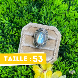 Explorez notre Bague Argent 925 Pierre de Lune. Cette création marie avec élégance l'argent sterling à la mystique Pierre de Lune, donnant vie à une pièce au charme intemporel. La Pierre de Lune aux reflets bleus flamboyants est méticuleusement taillée pour briller d'un éclat unique, sublimée par un design raffiné. Exprimez votre style avec notre Bague Argent 925 Pierre de Lune.