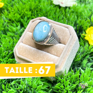 Chevalière Argent Larimar Bataille, un bijou exceptionnel qui allie élégance et sérénité. Cette chevalière est