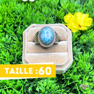 Larimar, souvent traversée de motifs nuageux qui rappellent le ciel et la mer des Caraïbes. Disponible dans différentes tailles de bague, cette chevalière offre un ajustement parfait pour un port confortable.