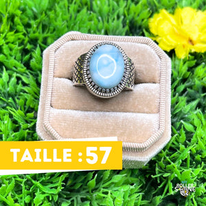Larimar, souvent traversée de motifs nuageux qui rappellent le ciel et la mer des Caraïbes. Disponible dans différentes tailles de bague, cette chevalière offre un ajustement parfait pour un port confortable.