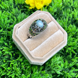 Chevalière Argent Larimar Étoile pour profiter de ses vertus relaxantes tout en ajoutant une touche de sophistication et de tranquillité à votre collection de bijoux.