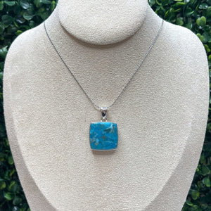 Découvrez la beauté du sud-ouest américain avec ce Pendentif Argent 925 Turquoise Mohave #1. Il est orné d'une véritable Turquoise Mohave, une pierre bleue avec des lignes de cuivre.