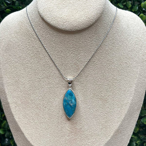 Découvrez la beauté du sud-ouest américain avec ce Pendentif Argent 925 Turquoise Mohave #15. Il est orné d'une véritable Turquoise Mohave, une pierre bleue avec des lignes de cuivre.
