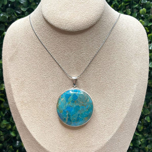 Découvrez la beauté du sud-ouest américain avec ce Pendentif Argent 925 Turquoise Mohave #20. Il est orné d'une véritable Turquoise Mohave, une pierre bleue avec des lignes de cuivre.