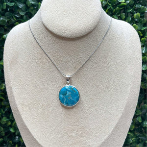 Découvrez la beauté du sud-ouest américain avec ce Pendentif Argent 925 Turquoise Mohave #24. Il est orné d'une véritable Turquoise Mohave, une pierre bleue avec des lignes de cuivre.