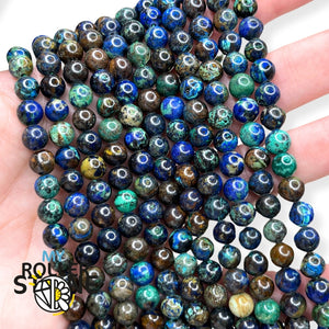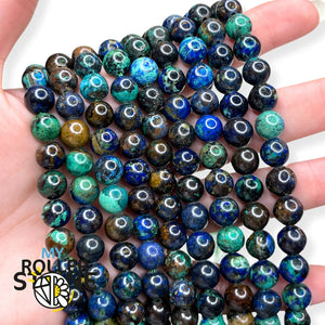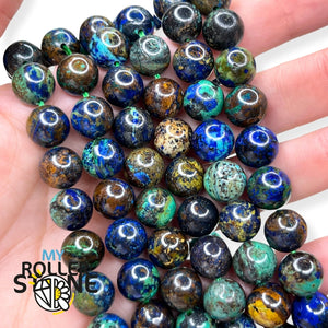 Couleur et Apparence : L'Azurite Chrysocolle présente une gamme de couleurs allant du bleu profond (de l'Azurite) au vert intense (de la chrysocolle). Les spécimens de haute qualité montrent une combinaison harmonieuse de ces couleurs, souvent avec des motifs tourbillonnants ou des veines distinctes. La gemme est généralement opaque avec un éclat vitreux à soyeux.