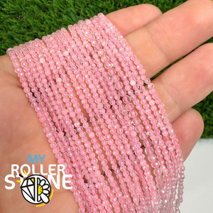 perles facettées en Quartz Rose, disponibles en 2 mm et 3 mm, séduisent par leurs nuances de rose tendre et leur éclat délicat. Facettées avec soin, elles reflètent la lumière avec élégance et apportent une touche de douceur et de raffinement à vos créations de colliers, bracelets et bijoux fins. Le Quartz Rose est reconnu comme la pierre de l’amour inconditionnel et de l’harmonie émotionnelle.