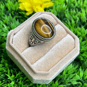 La monture en argent sterling 925 assure une finition de haute qualité, mettant en valeur les teintes chaudes et chatoyantes de l'Oeil de Tigre, avec ses reflets dorés et bruns rappelant le regard perçant d'un tigre. Disponible dans plusieurs tailles, cette bague s'adapte parfaitement à votre doigt pour un confort optimal.