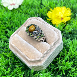 La monture en argent sterling 925 assure une finition de haute qualité, mettant en valeur les teintes chaudes et chatoyantes de l'Oeil de Tigre, avec ses reflets dorés et bruns rappelant le regard perçant d'un tigre. Disponible dans plusieurs tailles, cette bague s'adapte parfaitement à votre doigt pour un confort optimal.
