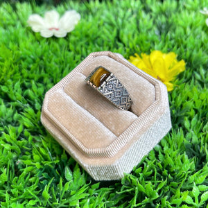 La monture en argent sterling 925 assure une finition de haute qualité, mettant en valeur les teintes chaudes et chatoyantes de l'Oeil de Tigre, avec ses reflets dorés et bruns rappelant le regard perçant d'un tigre. Disponible dans plusieurs tailles, cette bague s'adapte parfaitement à votre doigt pour un confort optimal.