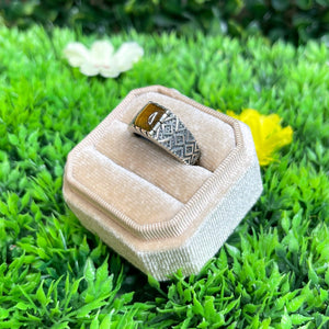 La monture en argent sterling 925 assure une finition de haute qualité, mettant en valeur les teintes chaudes et chatoyantes de l'Oeil de Tigre, avec ses reflets dorés et bruns rappelant le regard perçant d'un tigre. Disponible dans plusieurs tailles, cette bague s'adapte parfaitement à votre doigt pour un confort optimal.
