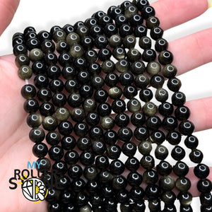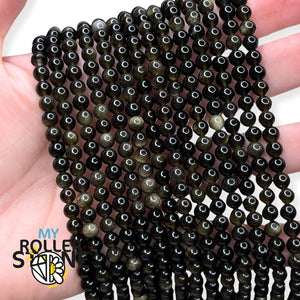 Couleur et Apparence : Elle est principalement de couleur noire avec des reflets dorés ou dorés-bruns visibles à la lumière. L'Obsidienne dorée peut présenter des motifs chatoyants et des textures lisses, parfois avec des zones translucides.