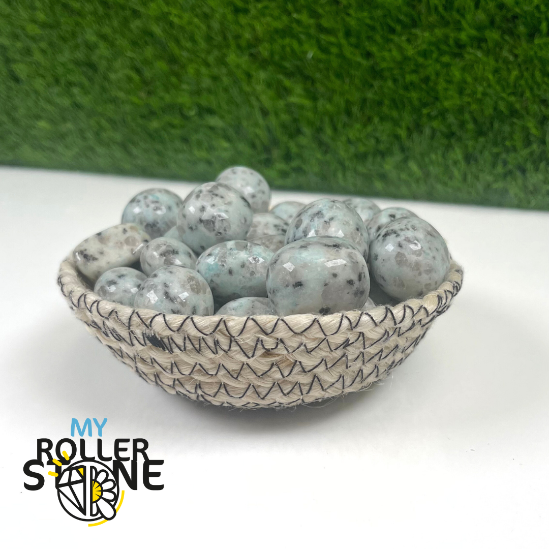Les pierres roulées en Jaspe Kiwi se distinguent par leur teinte douce mêlant vert clair, gris et petites inclusions noires typiques de ce jaspe unique. Leur apparence fraîche et apaisante en fait une pierre très appréciée pour les créations, la décoration ou la collection.
