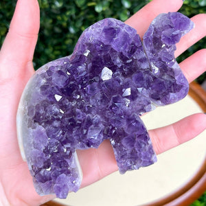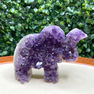 Plongez dans l'aura mystique de notre Géode Améthyste Eléphant, une pièce unique façonnée dans une Améthyste d'exception. Les nuances vibrantes, allant du violet profond au lavande délicat, ajoutent une touche captivante à tout espace. L'éléphant  résultat d'un processus soigneusement réalisé, fusionne l'élégance artistique à la puissance naturelle de l'Améthyste. Cette pièce exceptionnelle sert non seulement de décoration sophistiquée mais apporte également une énergie apaisante à votre environnement. Placez cette Géode Améthyste Eléphant sur une étagère ou un bureau pour créer un sanctuaire personnel où la beauté naturelle rencontre l'équilibre énergétique.