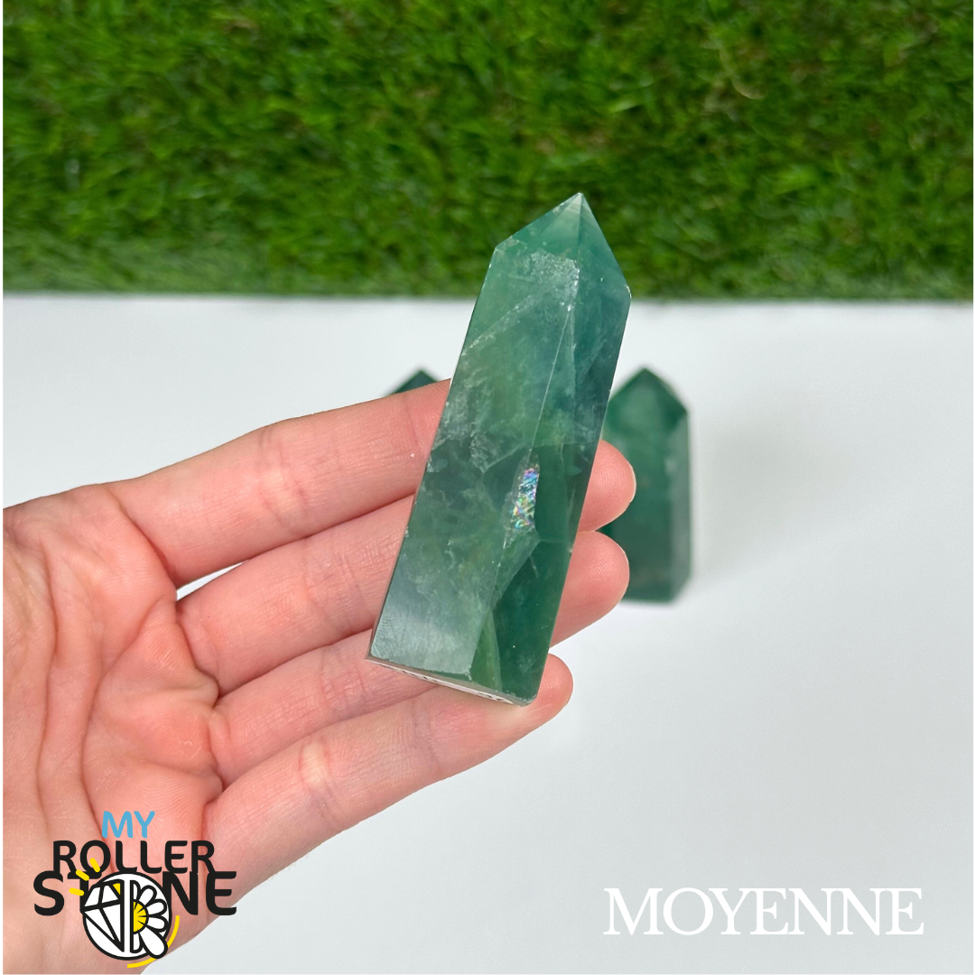 pointe en Fluorite verte naturelle se distingue par ses nuances apaisantes et ses reflets lumineux. Connue comme une pierre de