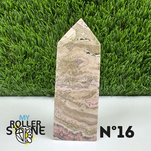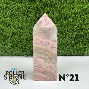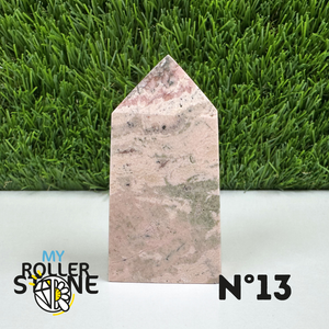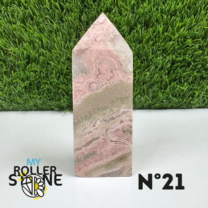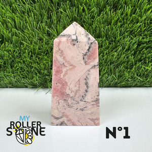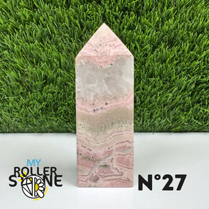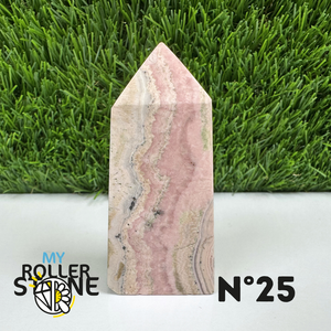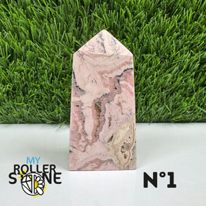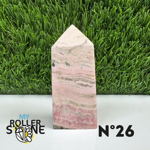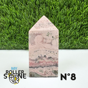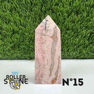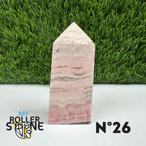 La Rhodochrosite provient ici d’Argentine 🇦🇷, pays reconnu pour produire certaines des plus belles qualités de cette pierre. Elle se distingue par ses bandes naturelles roses et blanches qui créent des dessins doux et harmonieux au cœur de la pierre.