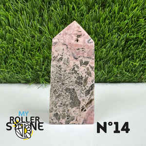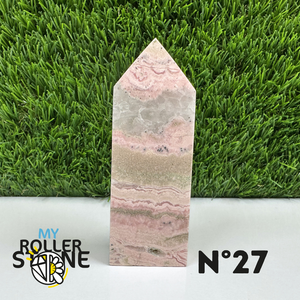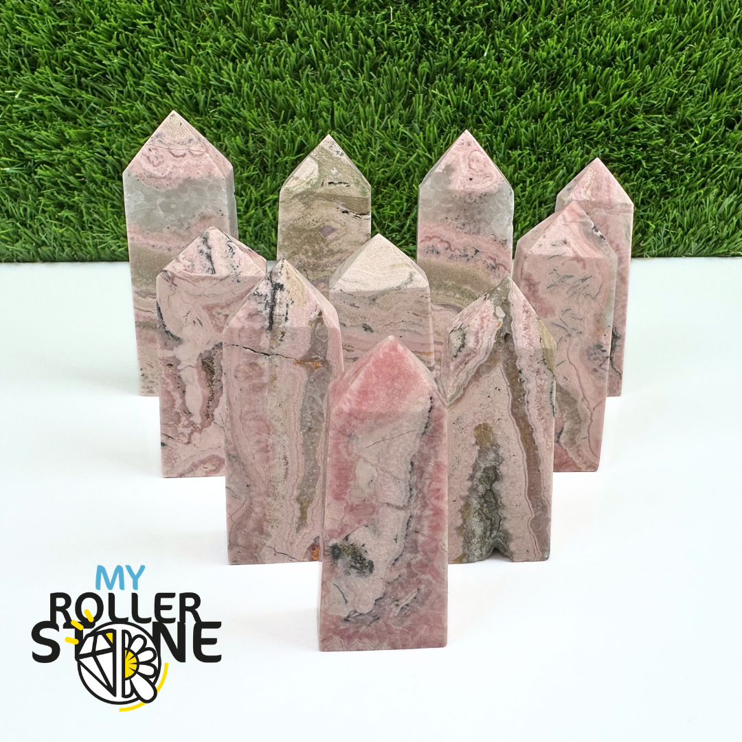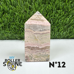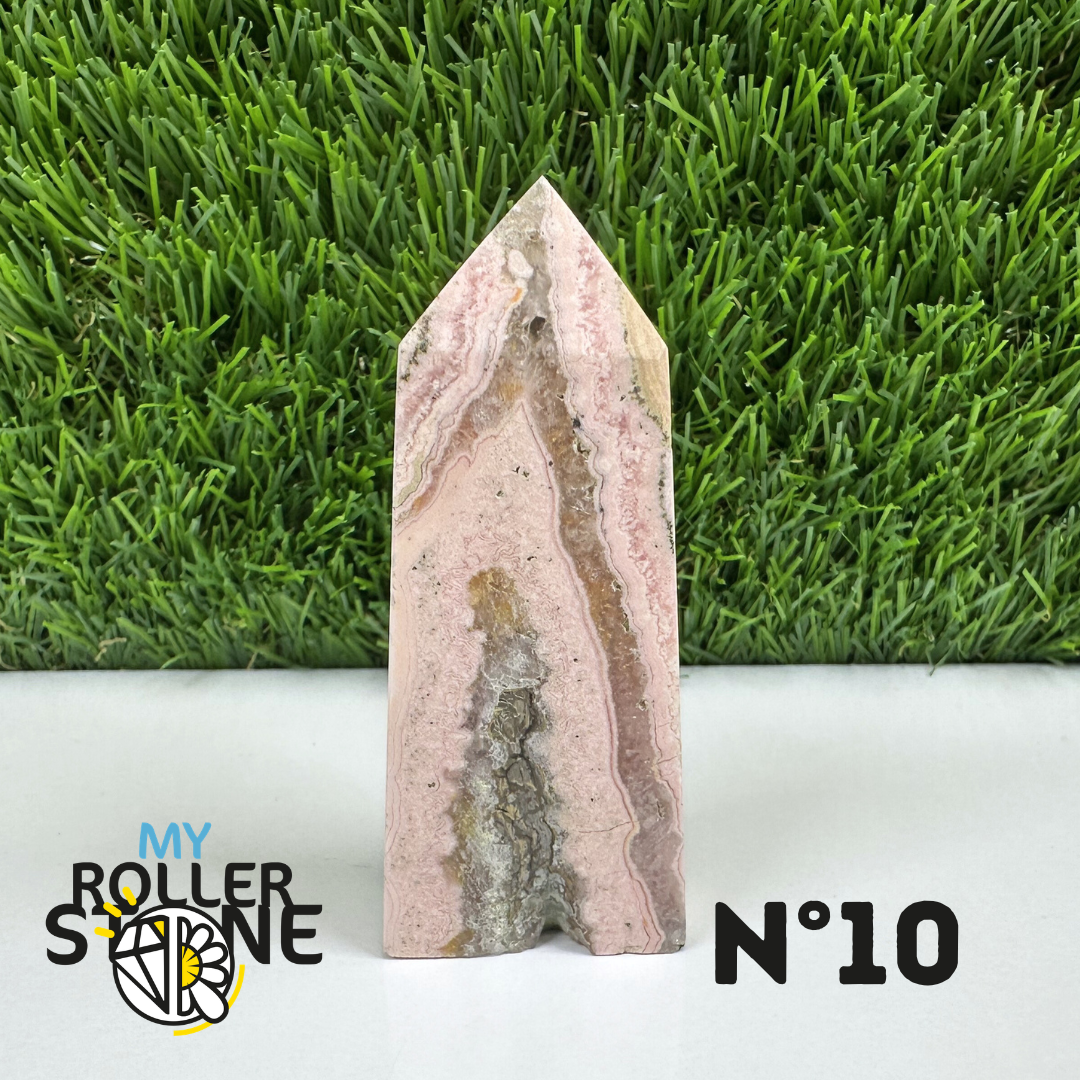 Ces pointes rectangulaires Rhodochrosite Argentine révèlent les magnifiques bandes roses et blanches caractéristiques de cette pierre naturelle très recherchée. Chaque pointe en Rhodochrosite d’Argentine présente des motifs uniques formés naturellement dans le minéral, offrant un rendu minéral élégant et décoratif.