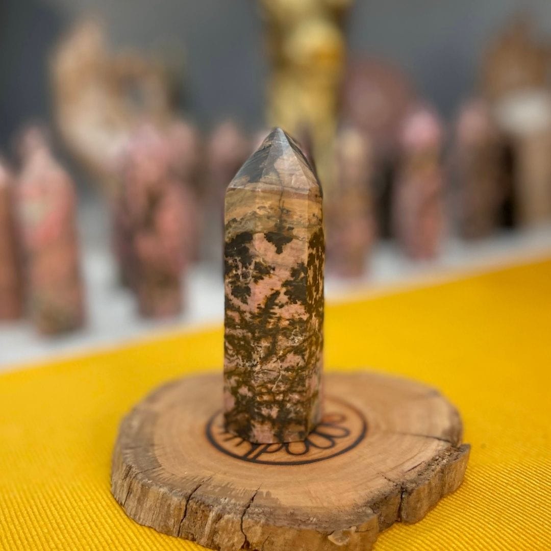 Une pointe Rhodonite est un excellent outil pour équilibrer les énergies yin et yang d'une zone, et peut être placée au centre de la maison pour attirer et diriger le flux d'amour et d'énergie.