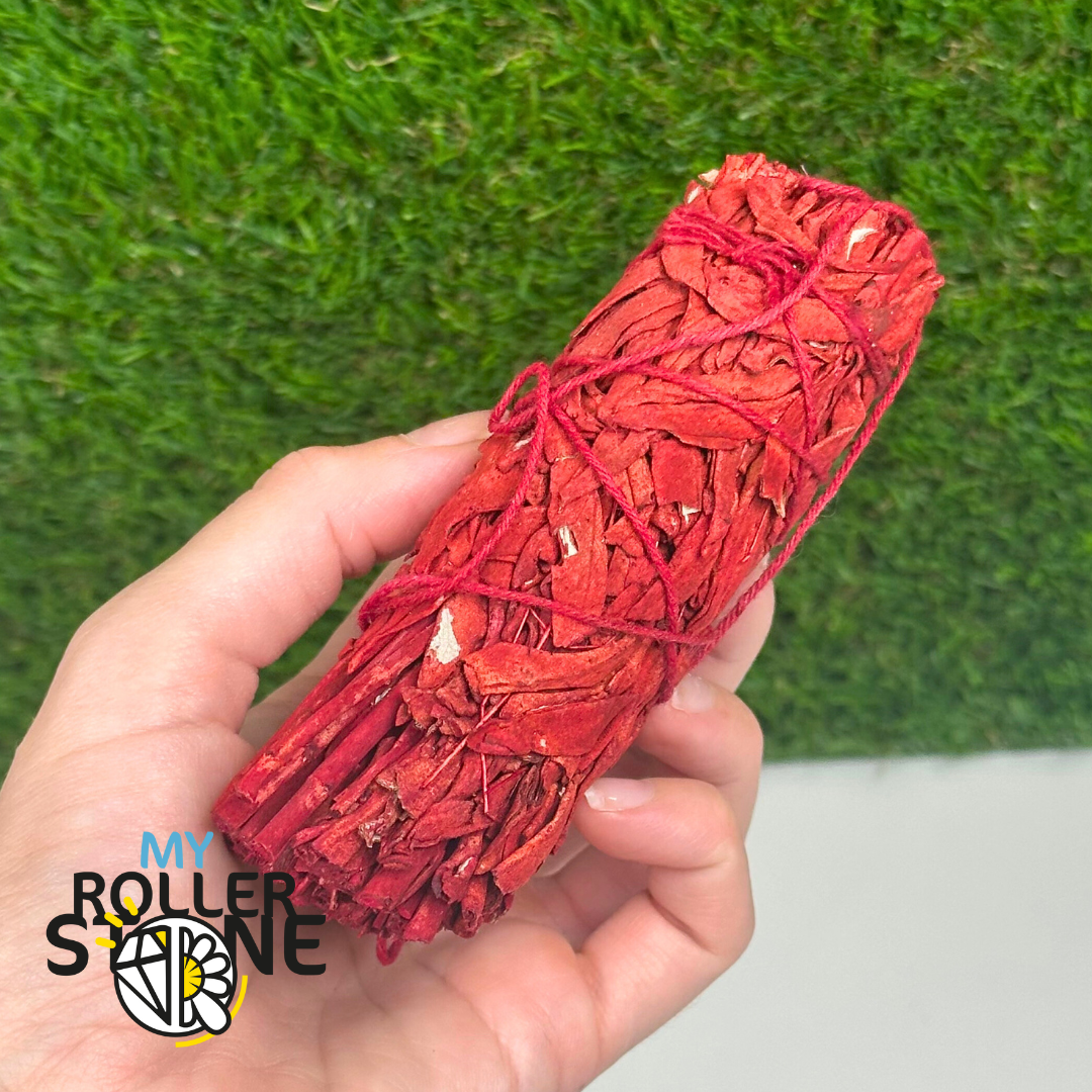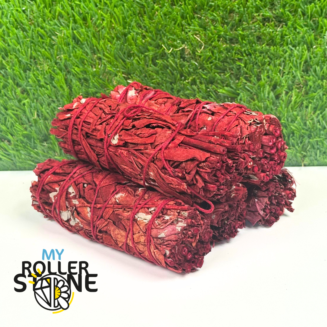 La sauge blanche provient de Californie, cueillie à la main dans le respect des traditions amérindiennes. Le sang de dragon est une résine naturelle extraite de certaines espèces de rotang et de dracaena, réputée pour sa couleur rouge intense et ses propriétés purificatrices et protectrices. Chaque fagot est lié artisanalement, puis enduit de résine pour un effet énergétique renforcé.