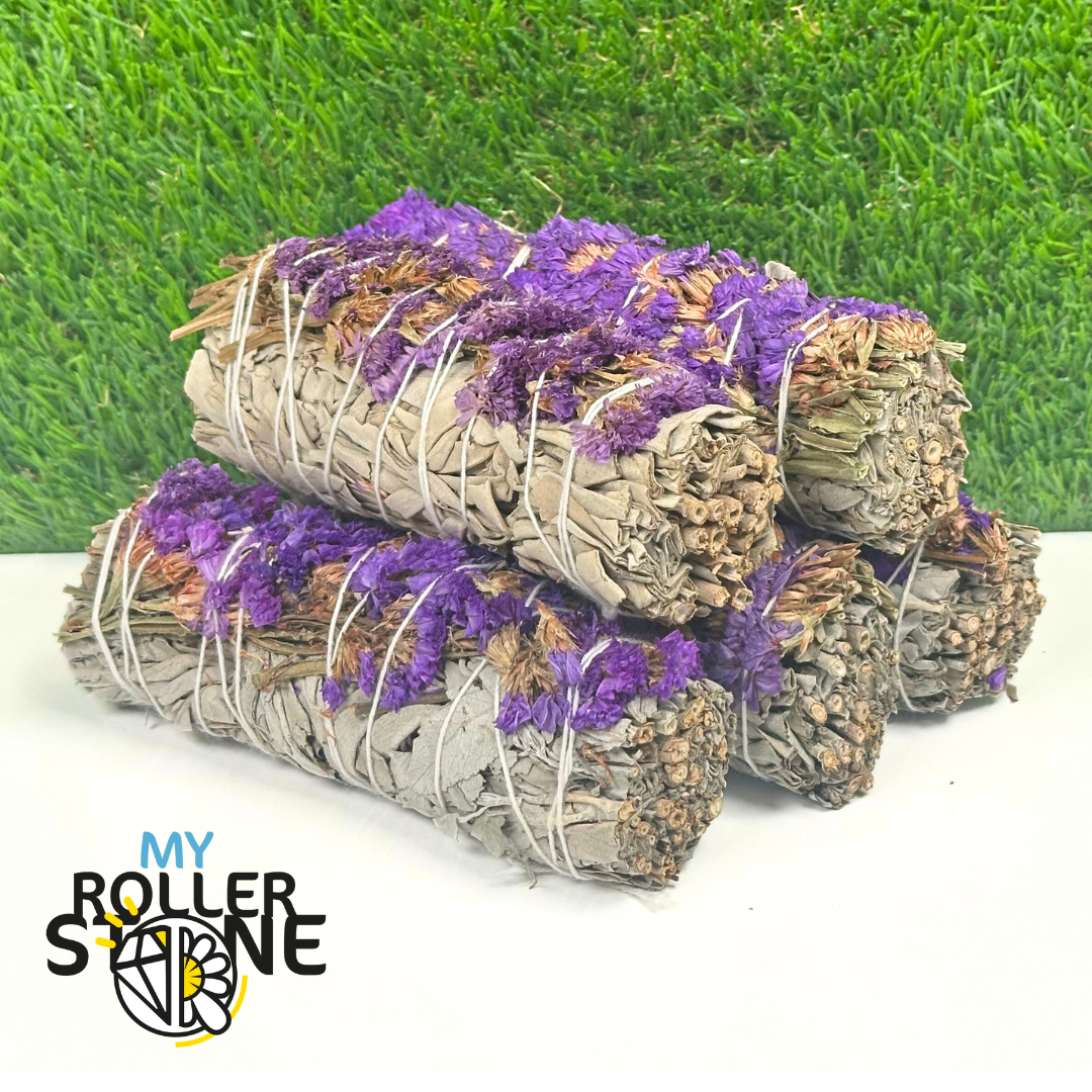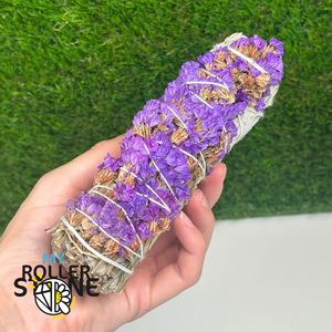 La sauge blanche provient de Californie, récoltée à la main dans le respect des traditions amérindiennes. Les fleurs de sinuata violette, séchées et délicatement fixées, sont sélectionnées pour leur éclat et leur symbolique spirituelle. Chaque fagot est assemblé artisanalement avec une intention de purification douce et d’alignement énergétique.