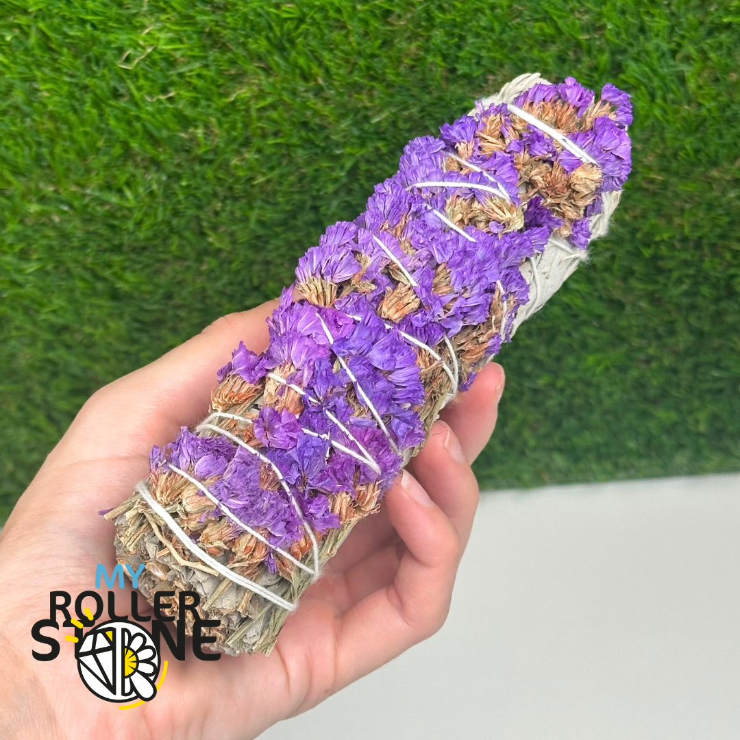 Ce fagot de sauge blanche et fleurs de sinuata violette associe la puissance purificatrice ancestrale de la sauge à l’énergie spirituelle et apaisante du violet. Idéal pour les rituels de nettoyage énergétique, de méditation profonde et d’élévation spirituelle.