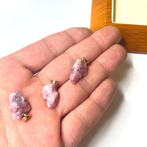 Chaque Pendentif Tourmaline rose brute est fabriqué à partir d'une pierre naturelle de tourmaline rose brute, qui a été taillée et polie pour en faire un bijou élégant et raffiné. Le pendentif en tourmaline rose brute est monté sur une bélière en platinium, qui complète parfaitement la couleur rose délicate de la pierre.