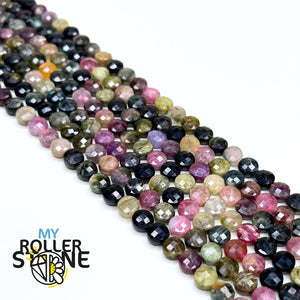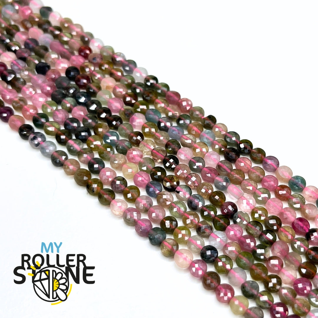 Perles Rondes Plates Facettées en Tourmaline Multicolore – Harmonie, Élégance & Créativité