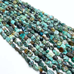 Découvrez l'élégance naturelle et les bienfaits énergétiques de notre Perle Baroque Turquoise Africaine. Chaque perle, dotée d'une forme irrégulière, met en valeur la splendeur unique de la Turquoise Africaine. Vendue en ligne de 38 cm, elle offre une polyvalence créative pour la confection d'un collier ras de cou ou de deux bracelets de taille moyenne.