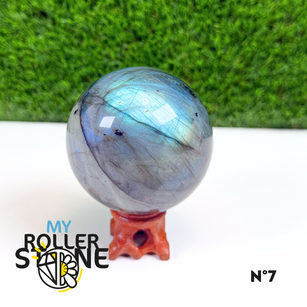 Chez My Roller Stone, nous sélectionnons nos pierres depuis plus de 10 ans en privilégiant la profondeur des reflets, leur éclat et leur stabilité. Une belle labradorite capte immédiatement la lumière et révèle son effet irisé avec fluidité.