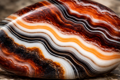 Les couches peuvent apparaître sous forme de lignes parallèles ou de motifs légèrement ondulés. Cette structure en bandes est l’une des caractéristiques les plus importantes de la sardonyx et constitue un indicateur fiable de son origine naturelle.