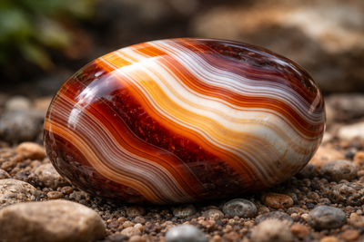 La sardonyx est une pierre naturelle fascinante, reconnaissable à ses magnifiques bandes contrastées mêlant brun, rouge, noir et blanc. Appartenant à la famille des calcédoines et considérée comme une variété d’onyx, elle attire depuis longtemps l’attention pour ses motifs en couches uniques et son aspect élégant.