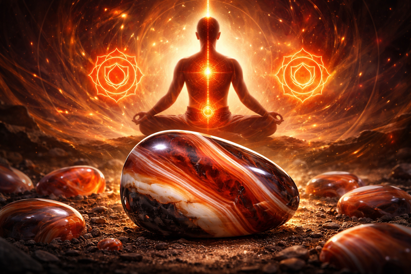 La pierre est également reliée au chakra sacré, qui est associé à l’énergie vitale, à la volonté et à la détermination. En travaillant avec ce centre énergétique, la sardonyx peut symboliquement aider à stimuler la motivation et à renforcer la capacité d’action.