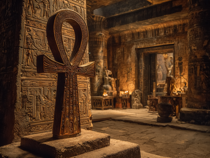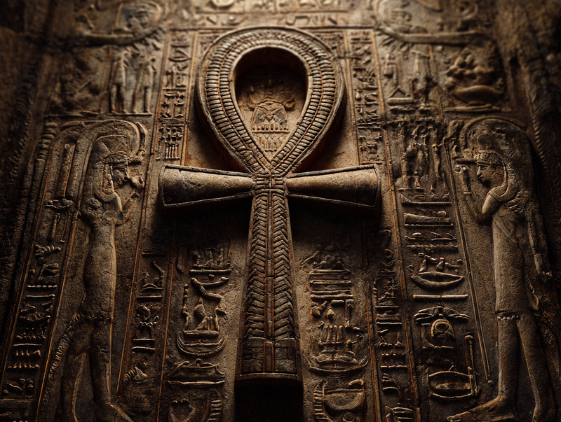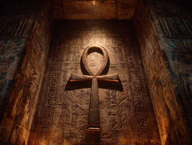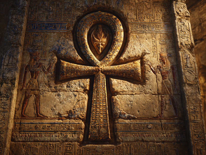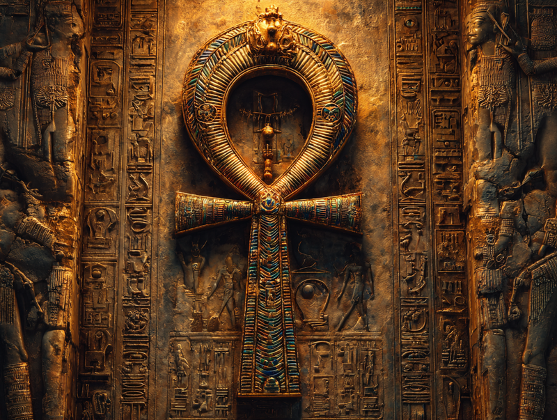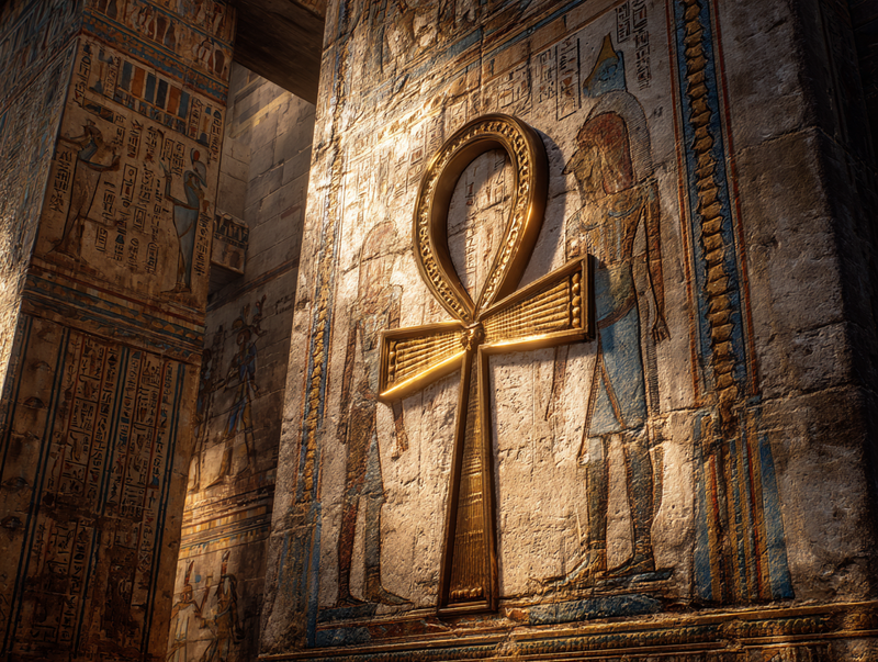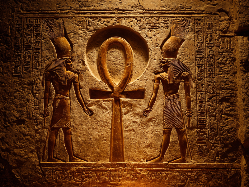 On retrouve l’Ankh dans une multitude de supports : fresques murales dans les temples et les tombes, bas-reliefs, statues, amulettes, bijoux ou encore objets rituels. Cette omniprésence montre qu’elle ne se limite pas à un usage religieux strict, mais qu’elle imprègne l’ensemble de la vie sociale, politique et spirituelle.