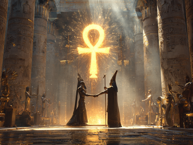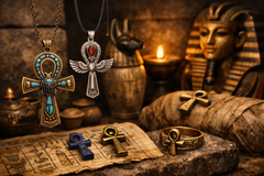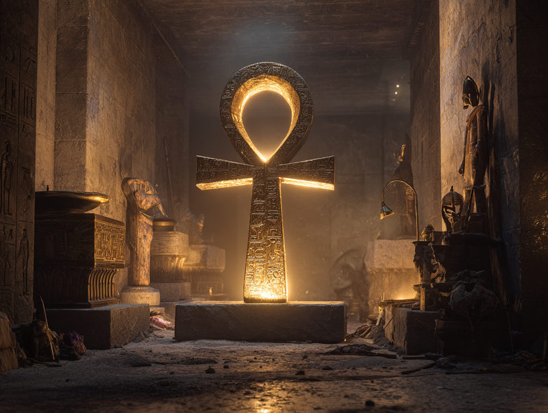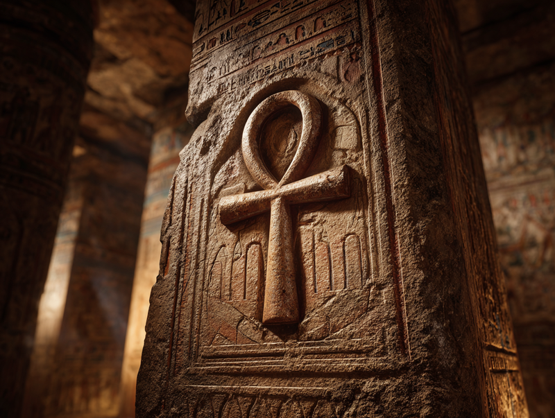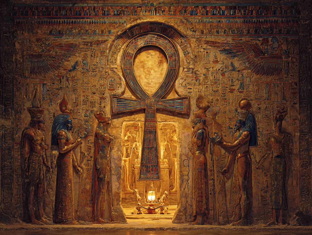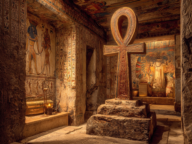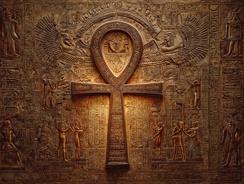 On retrouve l’Ankh dans une multitude de supports : fresques murales dans les temples et les tombes, bas-reliefs, statues, amulettes, bijoux ou encore objets rituels. Cette omniprésence montre qu’elle ne se limite pas à un usage religieux strict, mais qu’elle imprègne l’ensemble de la vie sociale, politique et spirituelle.