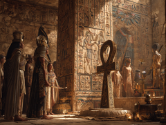 Dans les représentations iconographiques, les dieux tiennent fréquemment l’Ankh par la boucle, comme s’il s’agissait d’un objet sacré. Elle est souvent tendue vers le pharaon, soulignant le rôle du souverain comme intermédiaire entre le monde des dieux et celui des hommes. Par ailleurs, dans le contexte funéraire, l’Ankh est intégrée aux rituels et aux objets placés dans les tombes, afin d’assurer au défunt une survie dans l’au-delà. Elle devient ainsi un élément clé du passage vers l’immortalité.