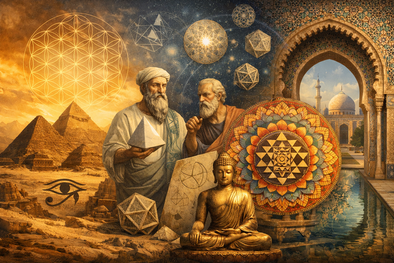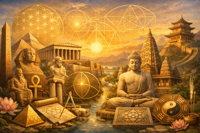 Au fil des civilisations, la géométrie sacrée s’est exprimée à travers des réalisations concrètes et symboliques.