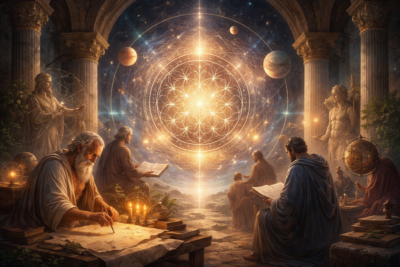 La géométrie sacrée a longtemps été au croisement de la philosophie et de la science. Elle a servi à explorer des questions fondamentales sur la nature de l’univers et les lois qui le régissent.