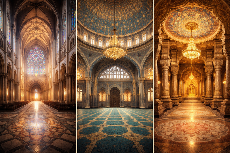 De nombreuses constructions religieuses à travers le monde reposent sur des principes de géométrie sacrée. Les cathédrales, les mosquées et les temples sont souvent conçus selon des proportions précises qui visent à créer un sentiment d’harmonie et d’élévation.
