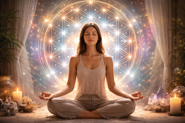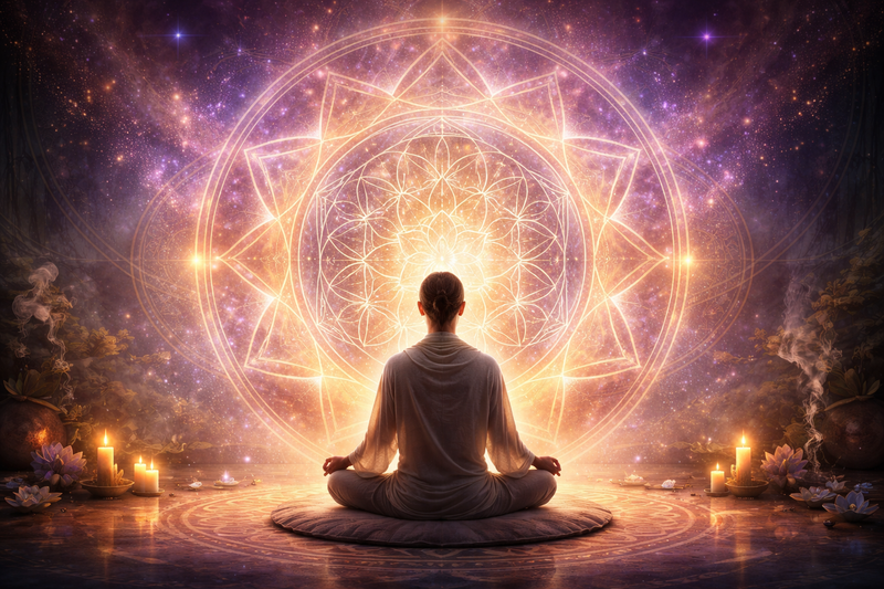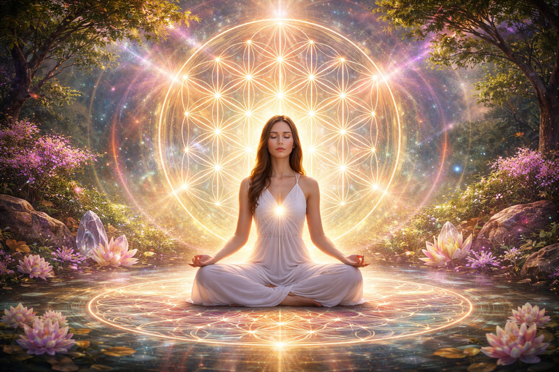 La géométrie sacrée est souvent utilisée comme support dans les pratiques méditatives. Ses formes structurées et équilibrées facilitent la concentration et permettent d’entrer plus rapidement dans un état de présence.